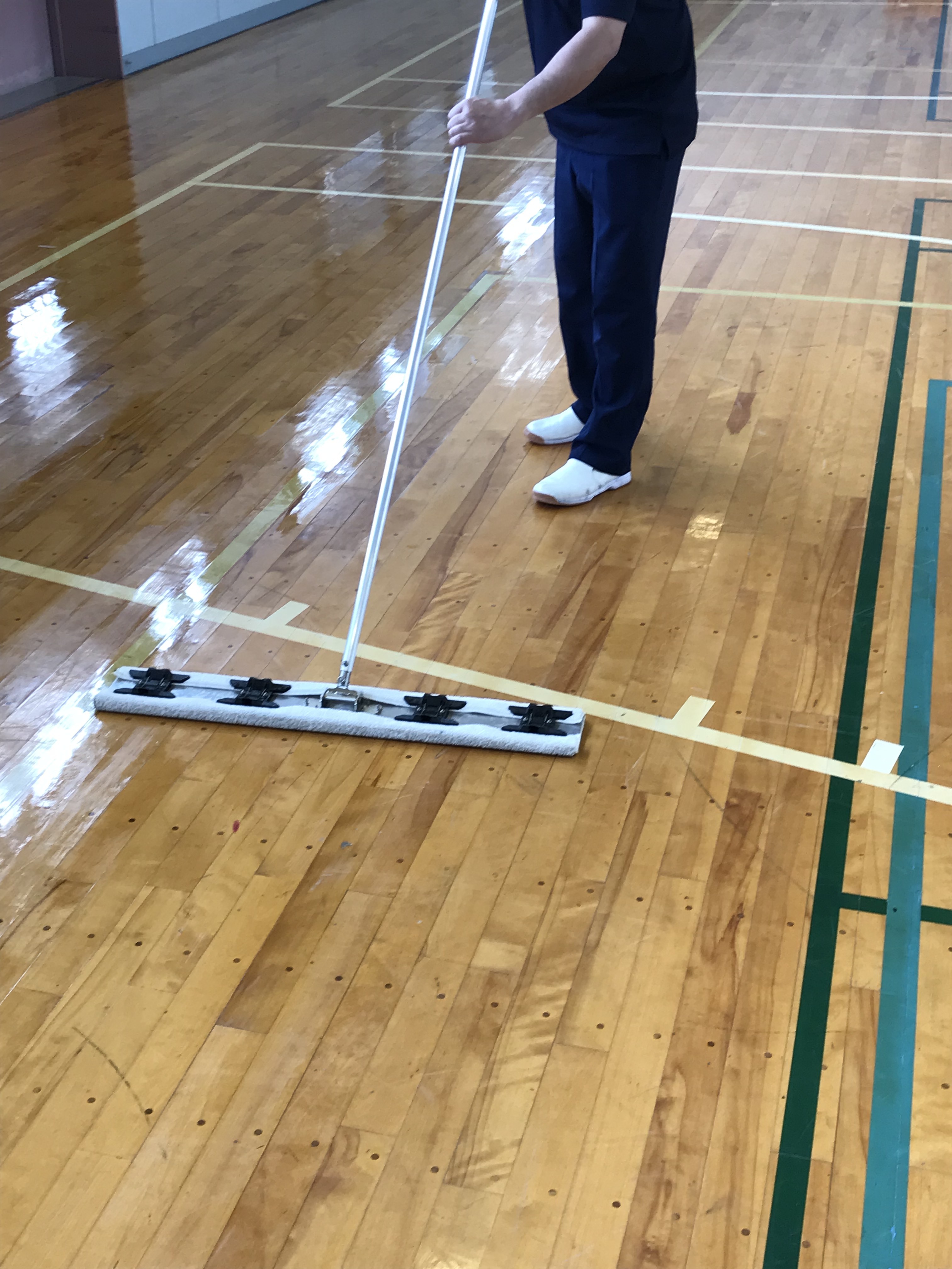 体育館床板の【水拭き】【ワックス】作業は禁止されています。